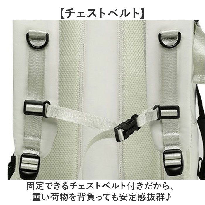 ・固定できるチェストベルト付きだから、重い荷物を背負っても安定感抜群♪
