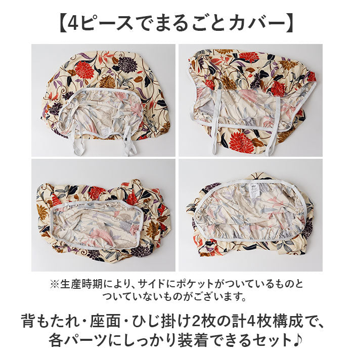 ・背もたれ・座面・ひじ掛け2枚の計4枚構成で、各パーツにしっかり装着できるセット♪※生産時期により、サイドにポケットがついているものとついていないものがございます。