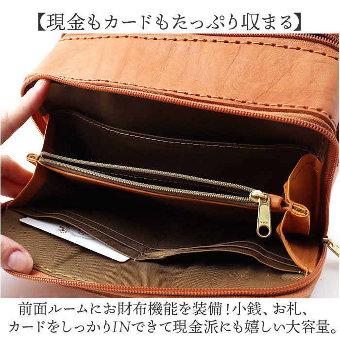 ・前面ルームにお財布機能を装備!小銭、お札、カードをしっかりINできて現金派にも嬉しい大容量。