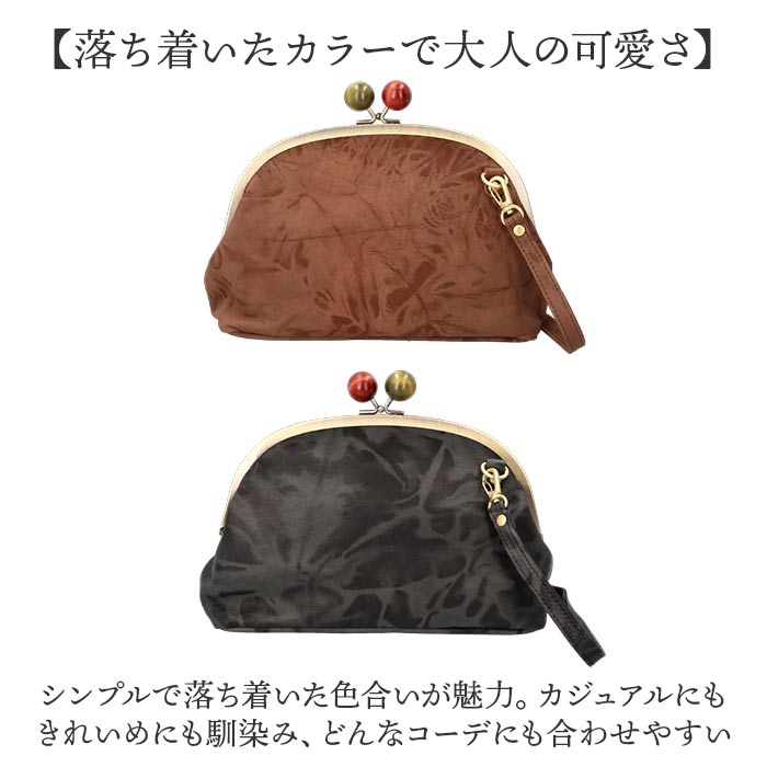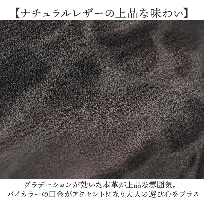 ・グラデーションが効いた本革が上品な雰囲気。バイカラーの口金がアクセントになり大人の遊び心をプラス